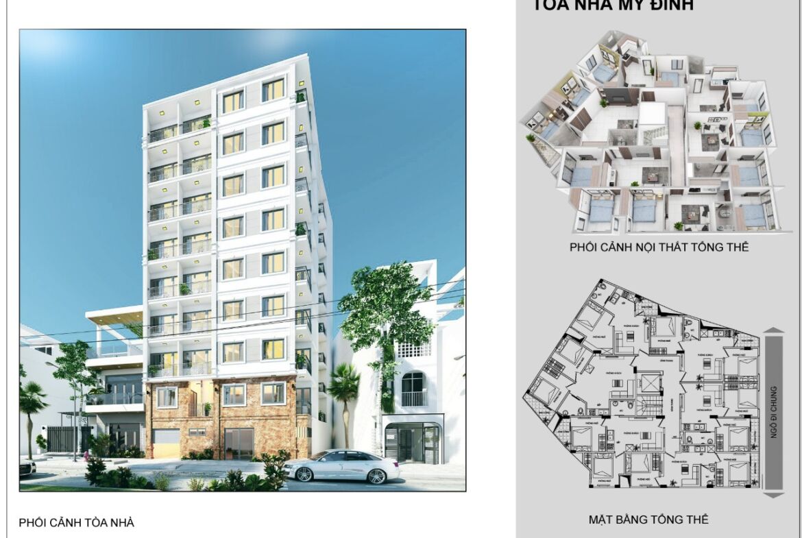 ➡ Dự án Chung cư mini Mỹ Đình được xây dựng trên mảnh đất khoảng gần 300m2 với 7 tầng căn hộ mỗi sàn có 5 căn hộ và 1 tầng để xe rộng hơn 200m2, vô cùng rộng rãi thoáng mát. Các căn hộ tại dự án được thiết kế khéo léo, đẹp bởi công ty thiết kế nhà đẹp 24h với mỗi căn hộ thiết kế theo kiểu đặc trưng của chung cư mini : 1 – 2 – 3 phòng ngủ , 1 khách liền bếp, 1 ban công hướng mặt ngõ và 2 vệ sinh.